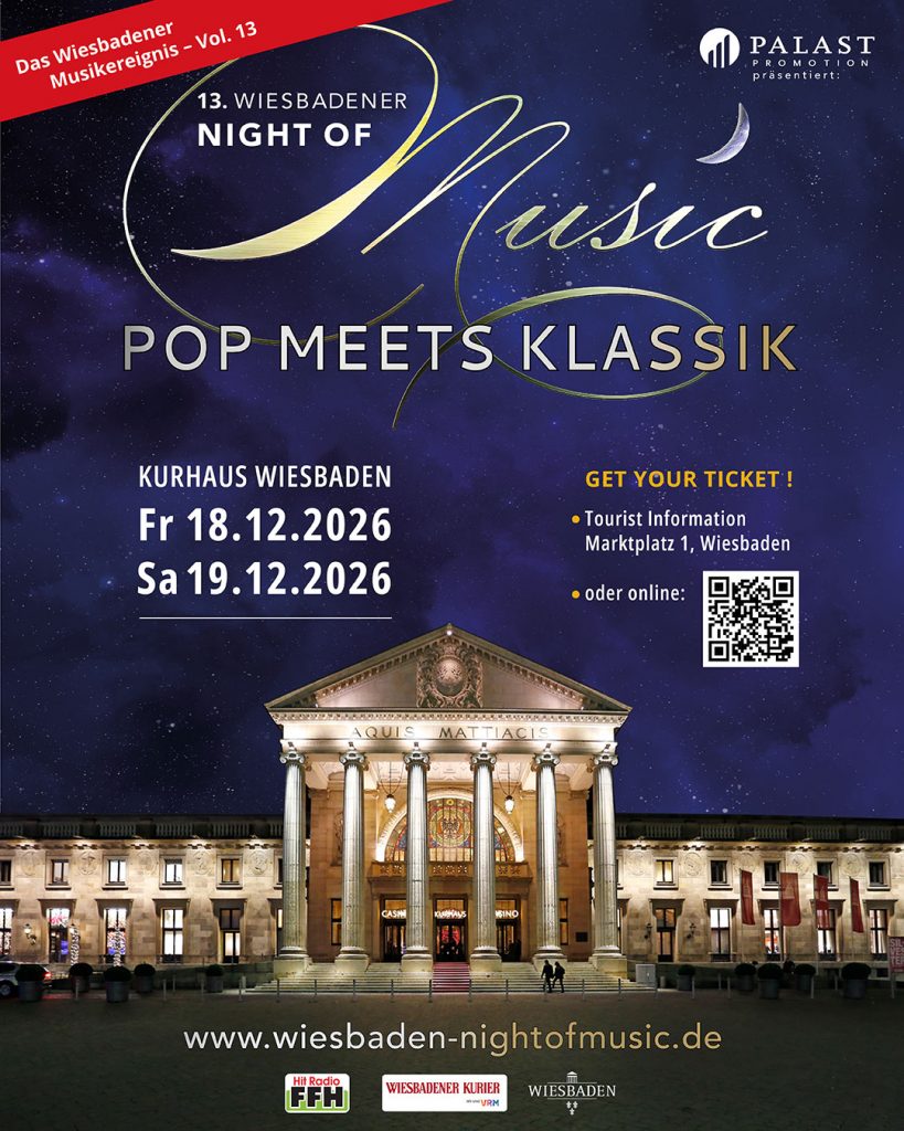 Mit der „Night of Music“ hat Palast Promotion in 2012 mit einer eigenen Veranstaltungsreihe begonnen. Jährlich im Dezember aufgeführt im Kurhaus Wiesbaden mit fast 200 Mitwirkenden. Chor, Sinfonierorchester, Band und Solokünstler gestalten eine bezaubernden Abend mit einem Musikmix von Klassik bis Pop. Auch der Benefiz-Gedanke kommt nicht zu kurz: immer bleibt ein erkleckliches Sümmchen für einen guten Zweck und eine unterstützenswerte Aktion.